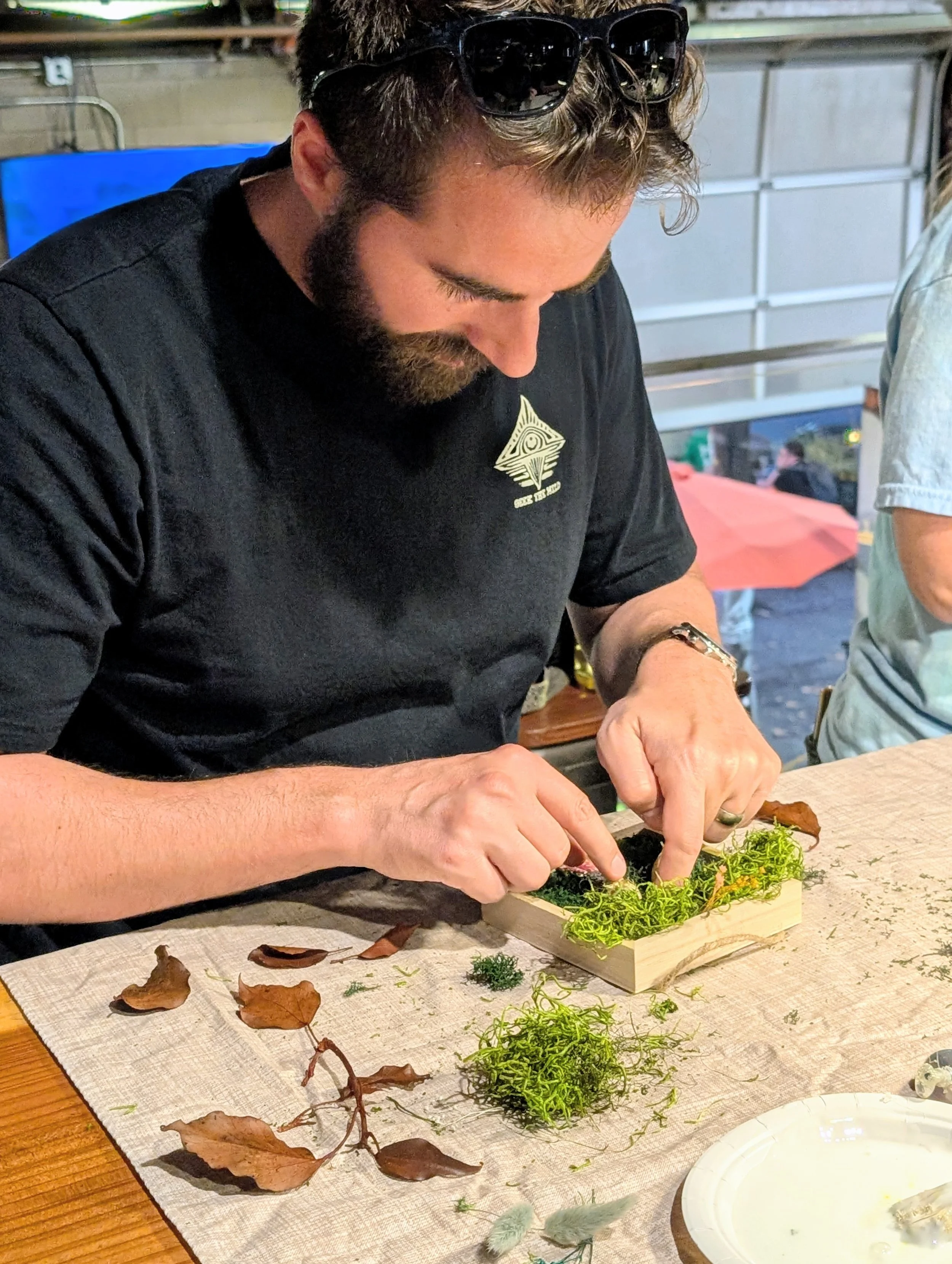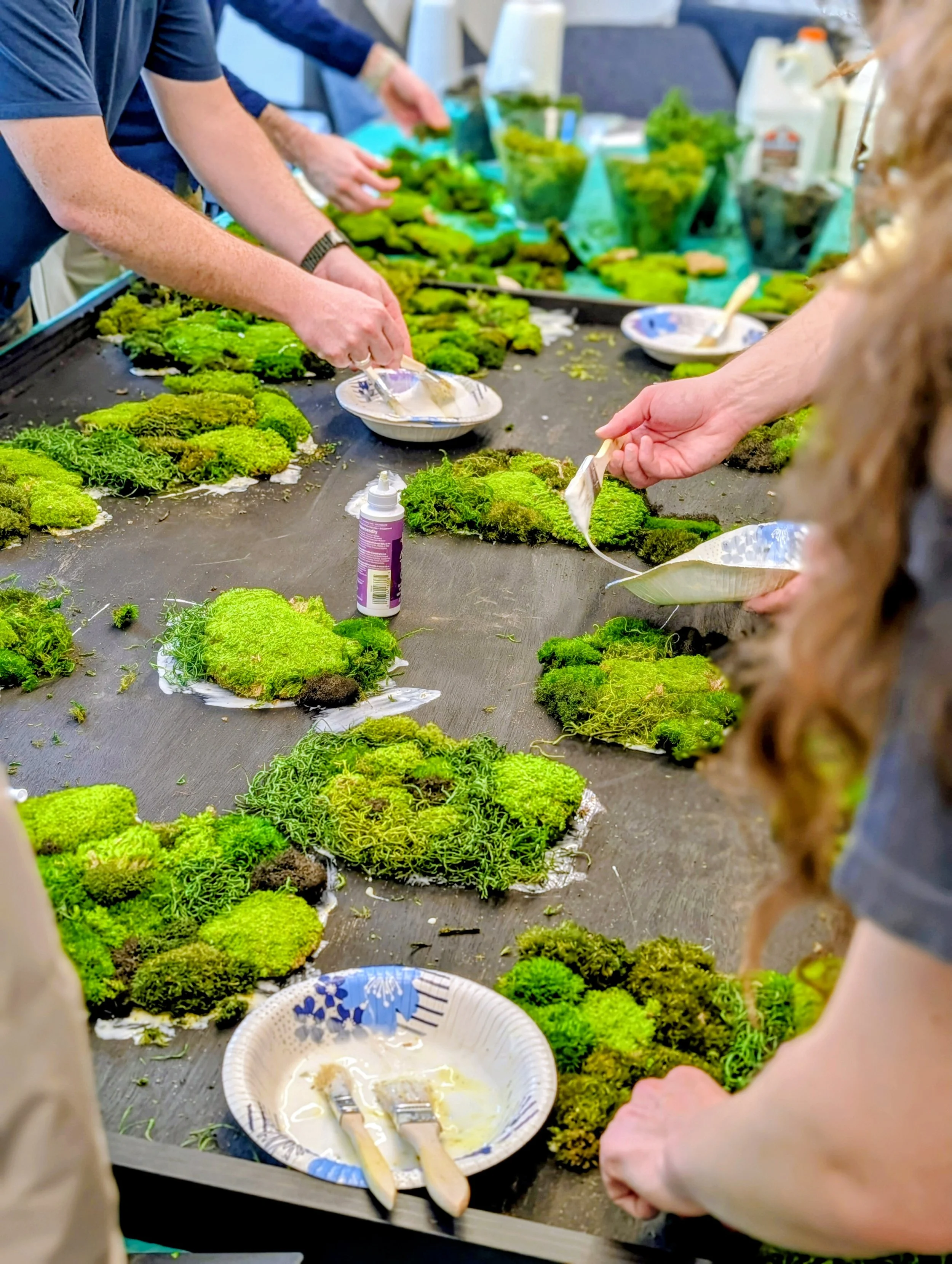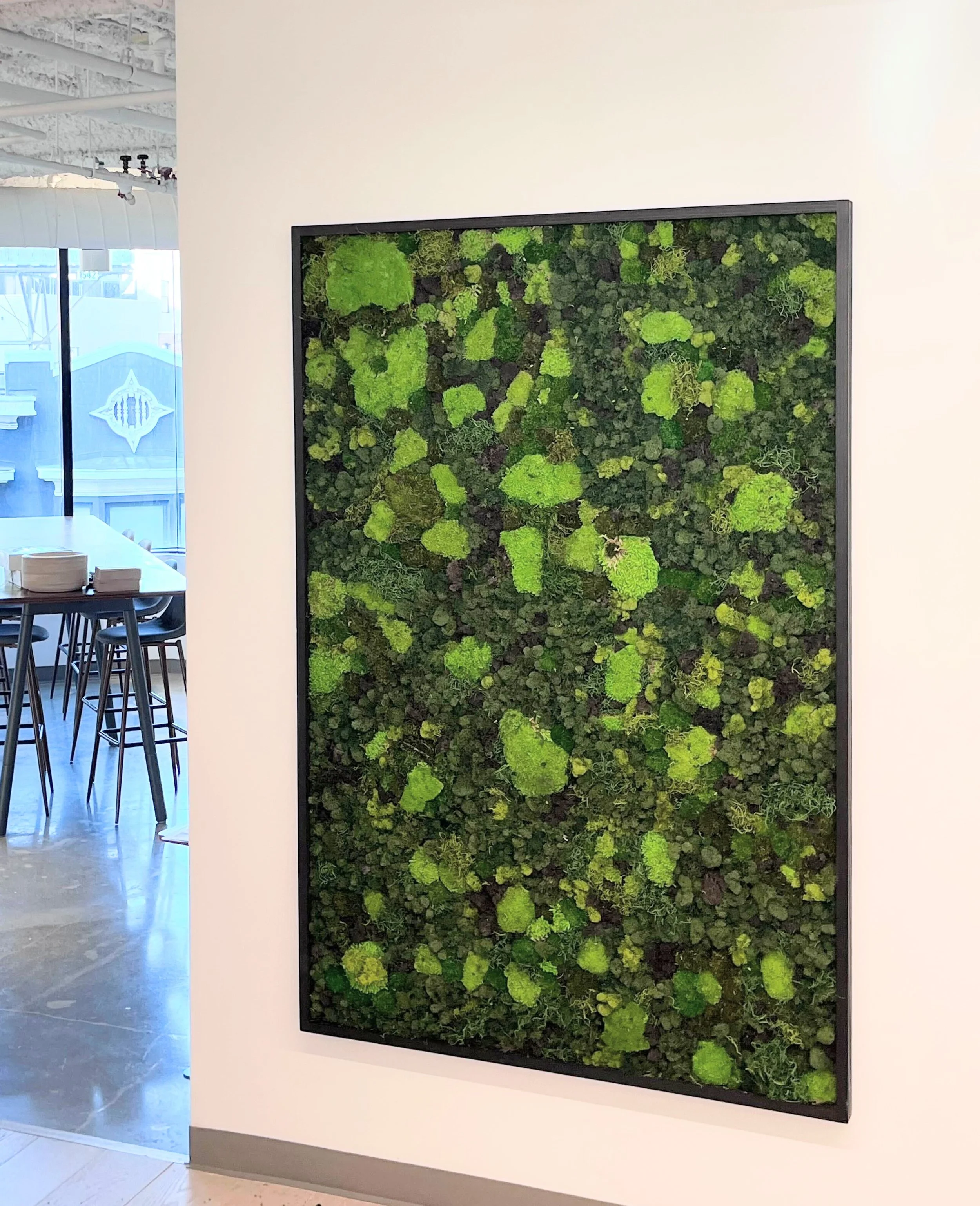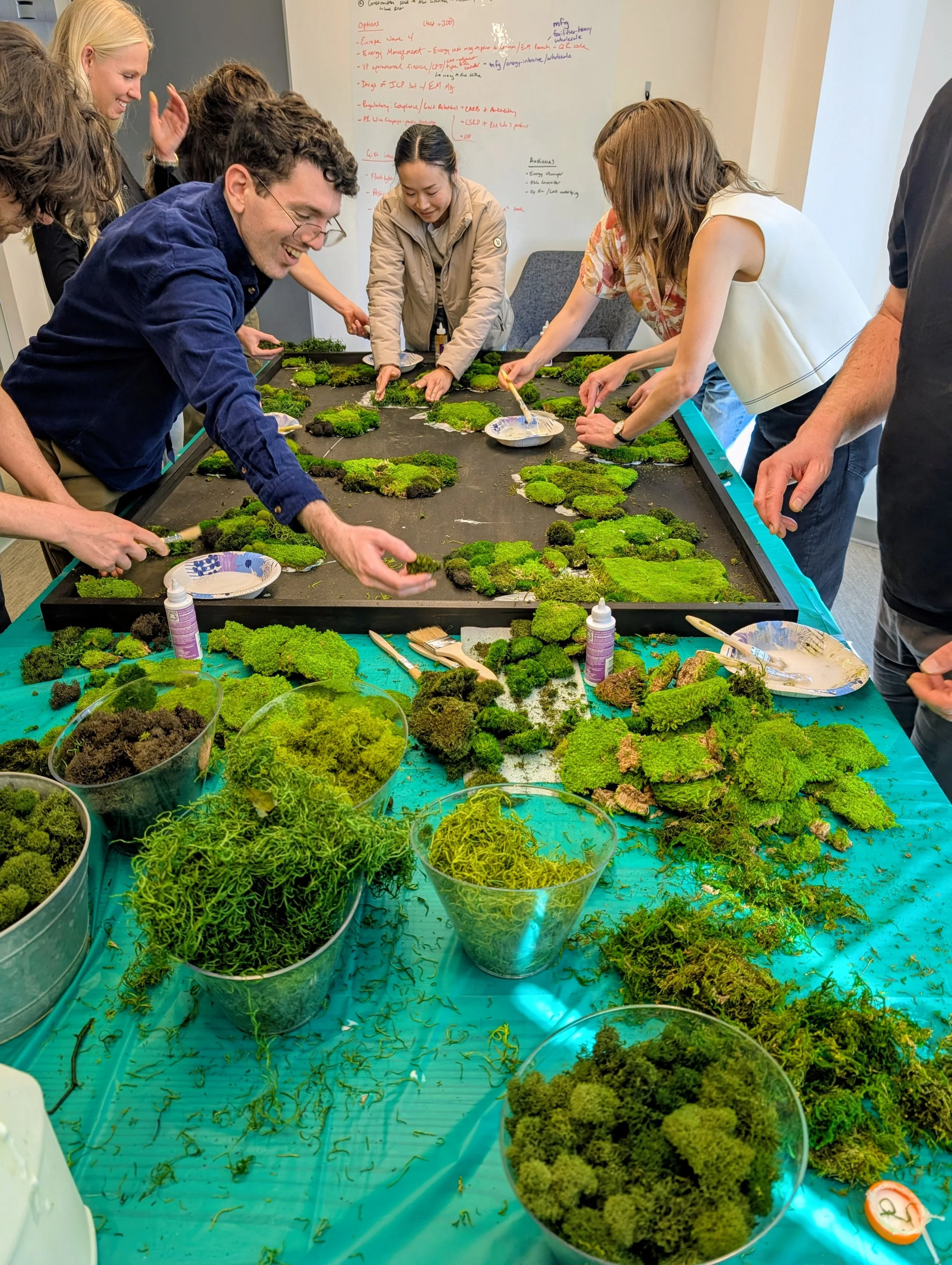 A collaborative Custom Moss Wall experience. Our carpenter will make a frame based on the dimensions you request; your team will work together to create a beautiful design that will grace the walls of your office and be a point of pride for everyone who helped make it!