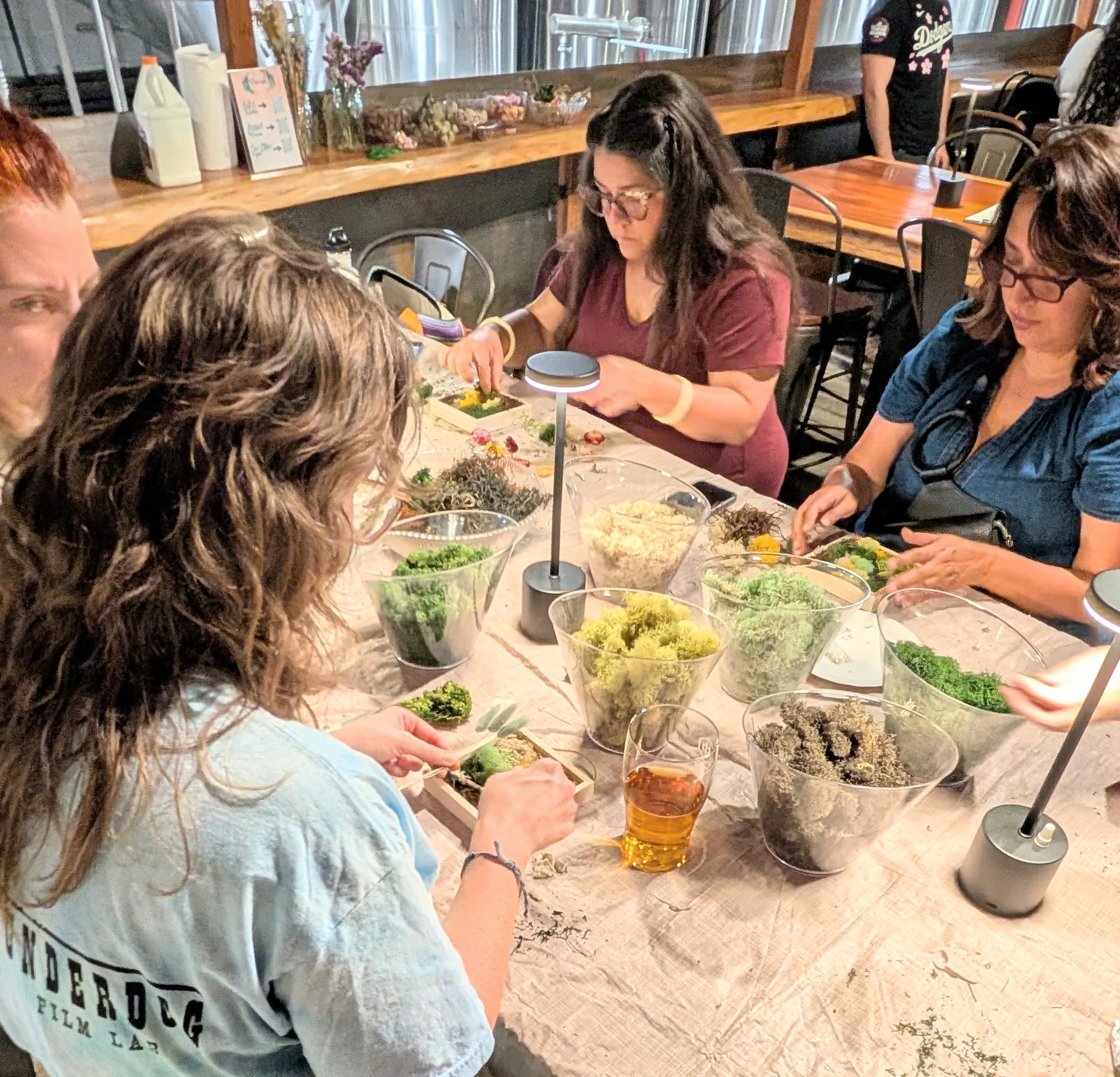 A Terrarium Bar, where people can drop by for a brief time to make a smaller terrarium. This is a casual craft - no plant care talk, no demonstration, just DIY fun (with easy instructions!). Perfect for large events like weddings, private parties, happy hours, and conferences. 50 person minimum.